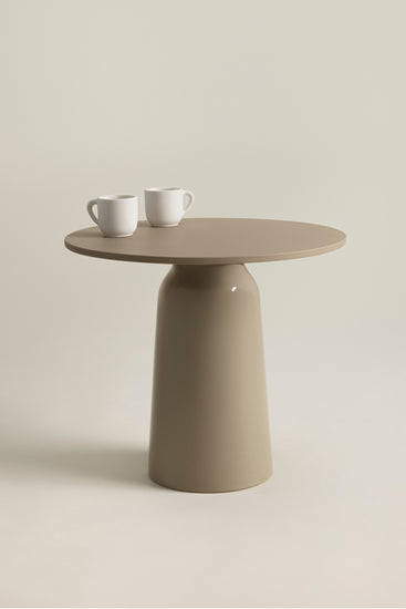 Composée d’un grand plateau rond reposant sur un pied plus compact, elle joue sur les contrastes de proportions et de matières. Son duo de finitions – brillante et mate – crée un dialogue subtil entre texture et lumière.