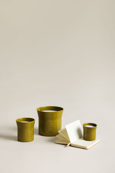 Pensée pour associer le design, parfum et savoir-faire artisanal, notre bougie en céramique – format moyen (300g) est façonnée et coulée à la main dans notre manufacture française.