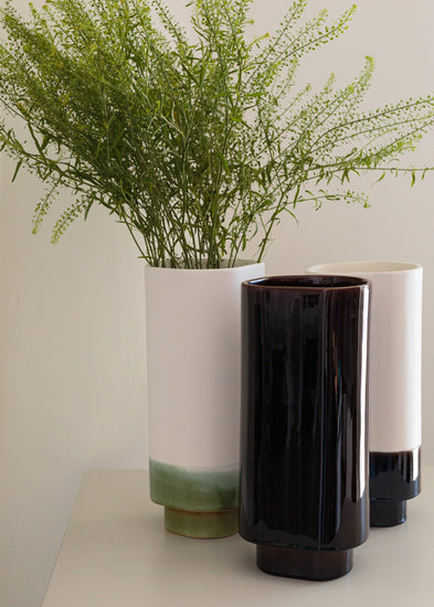 WAVE... Shapes and nuances, like an exchange, a perfect complicity between powerful volumes and delicate lines. The monolithic and enhanced structure of the "mono" vase underlines its balanced silhouette.