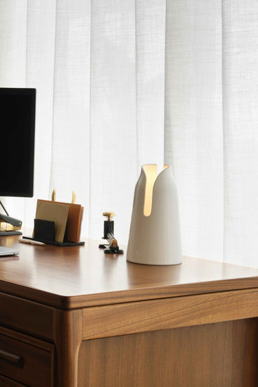 La lámpara de mesa COL Mini es una creación moderna y elegante, meticulosamente fabricada en nuestro taller en Charolles y diseñada por Aurélie Richard. Inspirada en nuestra lámpara de pie COL, esta versión mini conserva la esencia del diseño original al tiempo que está perfectamente adaptada para espacios más reducidos como mesitas de noche u oficinas. Con unas dimensiones compactas de 260 mm de altura y 145 mm de diámetro, la COL Mini se distingue por sus líneas depuradas y su estética minimalista, ofreciendo una luz suave y difusa.