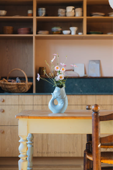 Símbolo de elegancia y originalidad, la jarra Pez Glouglou La Original perpetúa un saber hacer artesanal excepcional. Su famoso "gluglú", el alegre sonido que emite cuando se vierte su contenido, le confiere todo su encanto y autenticidad